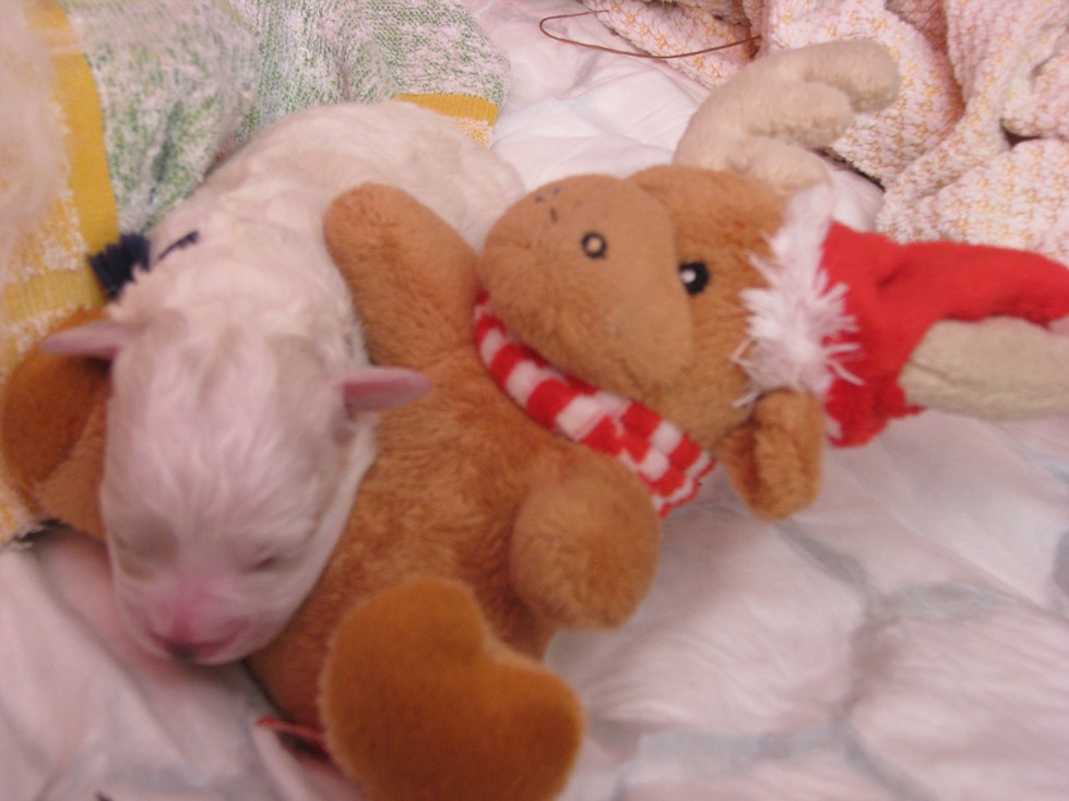 Po dlouhých úvahách po dnešku prckům přestáváme říkat jen "zelený", "modrý", "červená" a "žlutá", ale vybrali jsme jména. Snad se budou budoucím páníčkům zamlouvat.